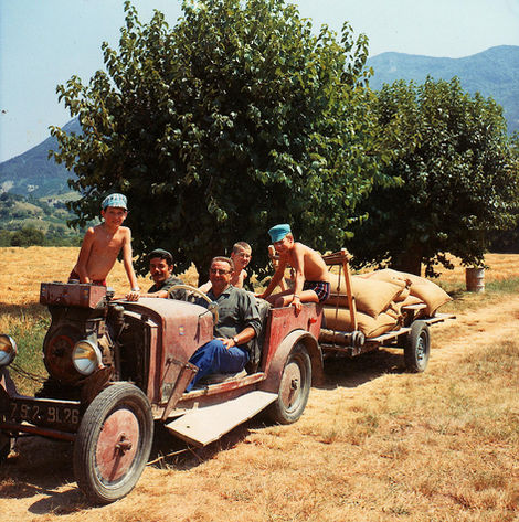 Een familie uit Parijs, op weg naar de Alpen om te kamperen, kreeg pech met de auto voor de boerderij van mijn grootouders. Omdat hun Renault 4CV niet meteen gerepareerd kon worden, bleven ze enkele dagen langs een veld dichtbij de Drôme kamperen.
